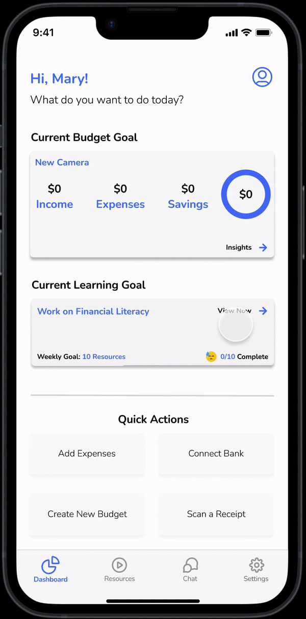 Recognizing that many users may not be familiar with budgeting and finance, I provided preset goals to help guide them through the process. These starter goals offer a clear direction and make it easier for users to begin their financial journey with confidence.