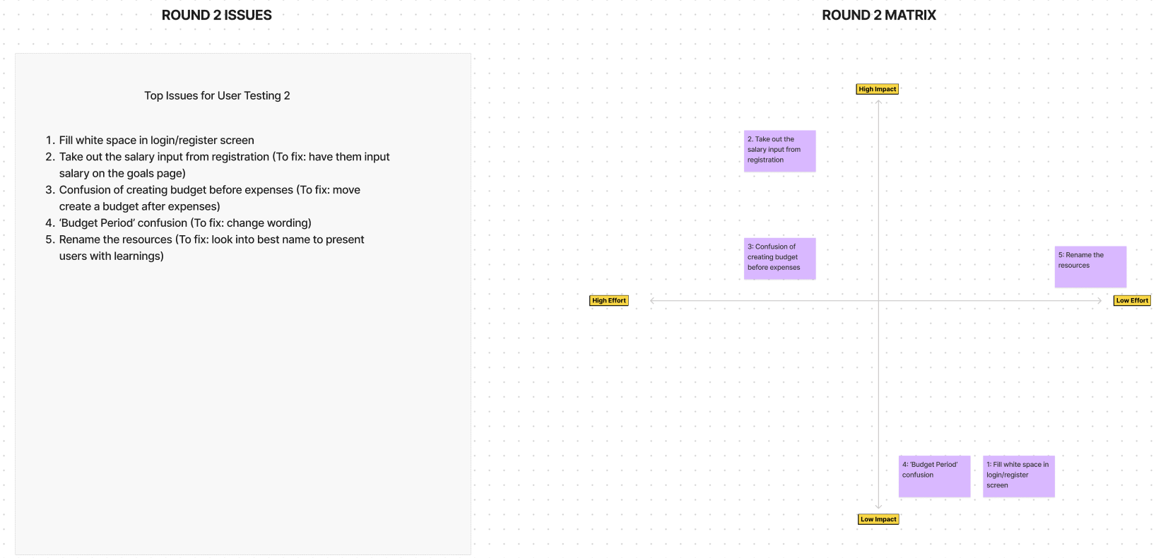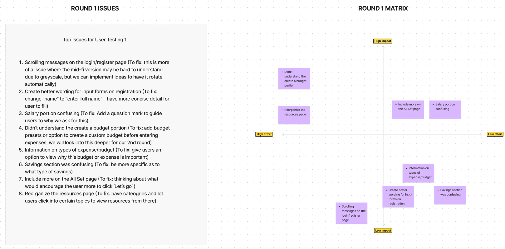 After each round of testing, the feedback and insights from the testers were prioritized using a Design Prioritization Matrix. This allowed me to assess the effort it would take to fix and the value it would bring to the user.