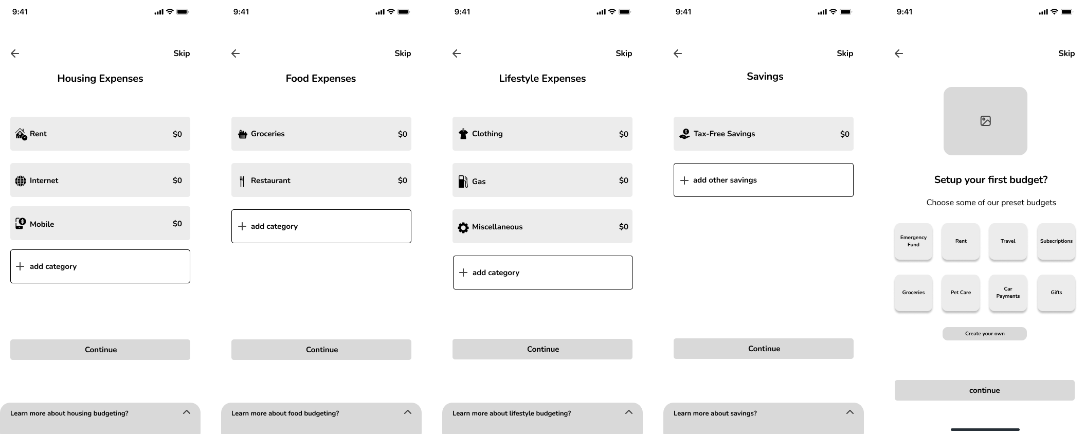 With many users not being familiar with budgeting and finance, I gave them some preset goals to start them off with to help guide them in the process.