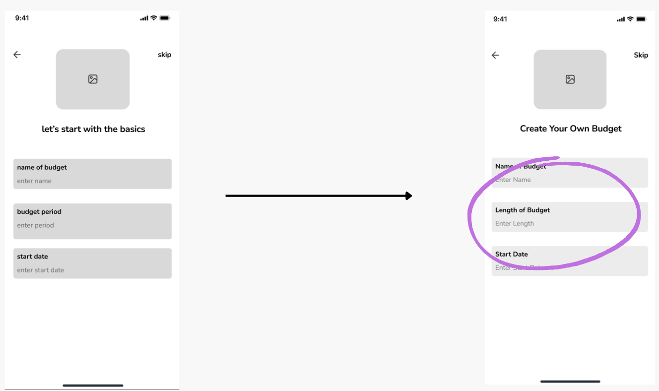 Solution: Rename the input fields for clarity and introduce lighter box designs in the mid-fidelity wireframes to improve visual hierarchy and reduce confusion.